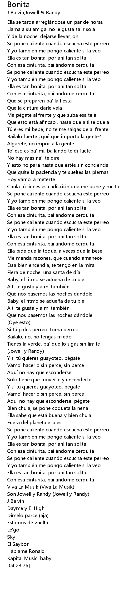 | [01:58.66] | Ella es tan bonita, por ahí tan solita |