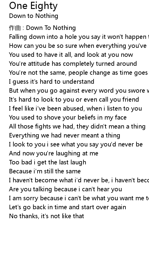 | 歌曲 | One Eighty |