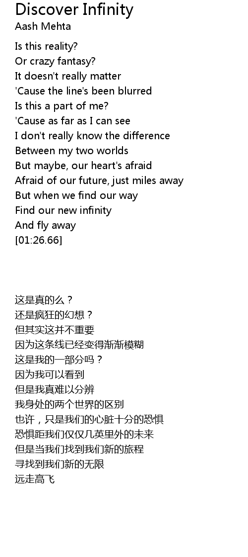 | [01:20.59] | Find our new infinity |