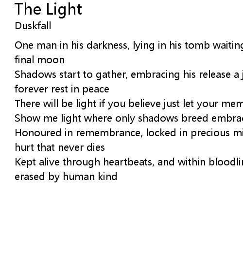 | Show me light where only shadows breed embrace my soul and set me free | |