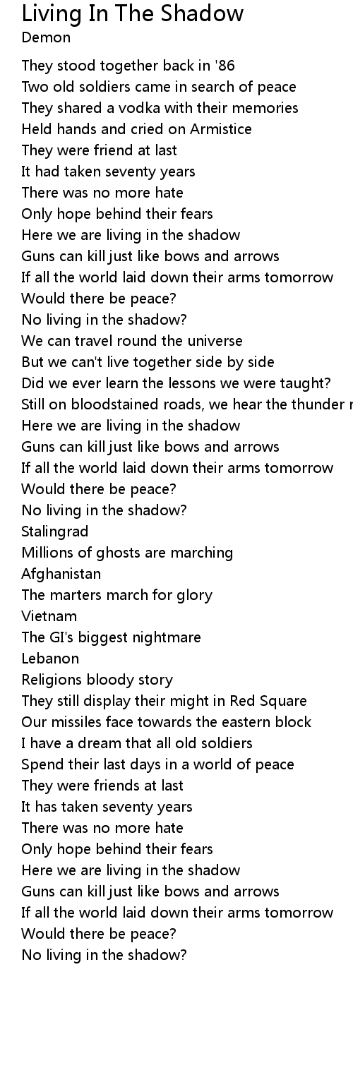 | Here we are living in the shadow | |