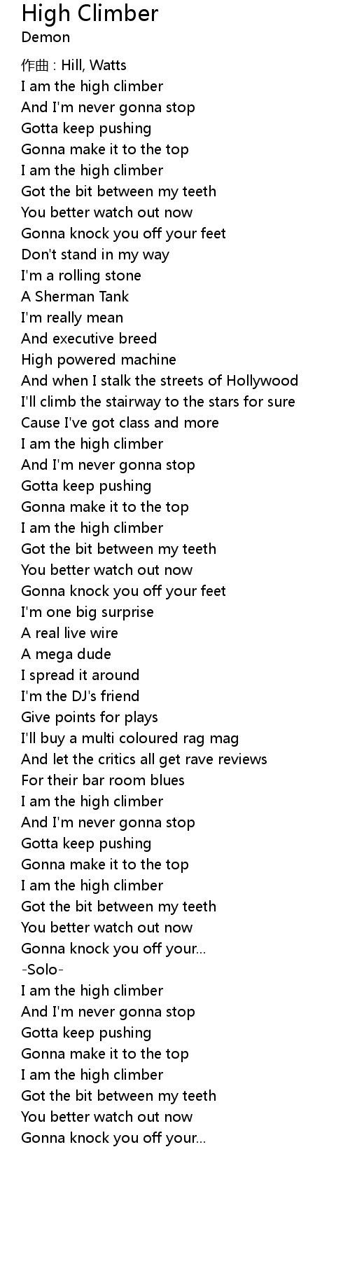 | 歌曲 | High Climber |