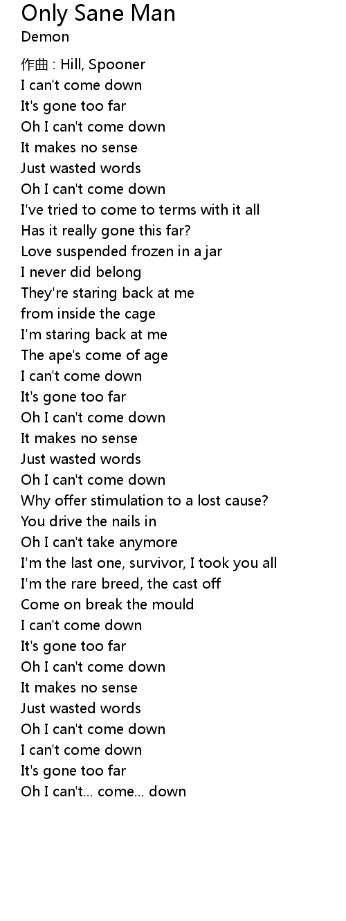 | 歌曲 | Only Sane Man |