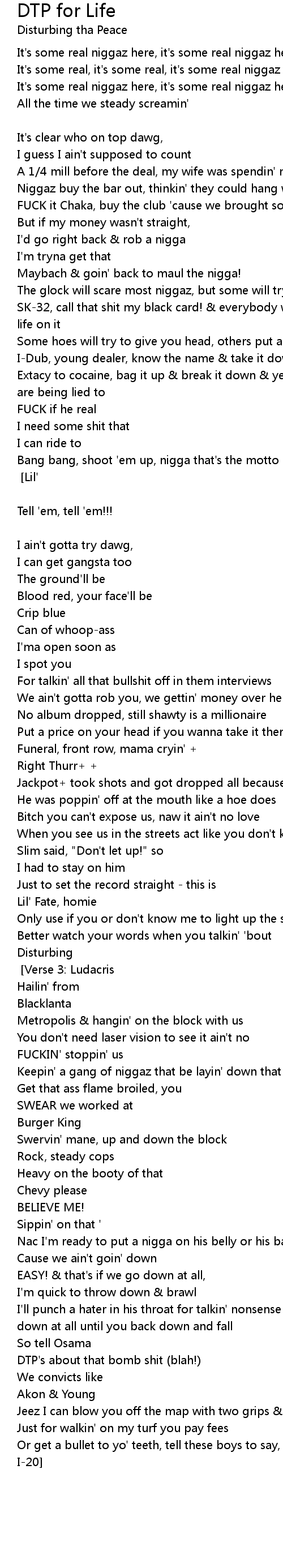 Tha Peace [Chorus x2: I-20] [Verse 3: Ludacris] |