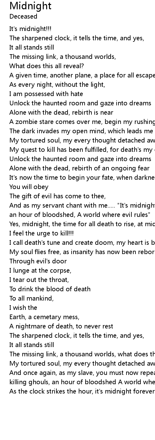 Yes, midnight, the time for all death to rise, at midnight