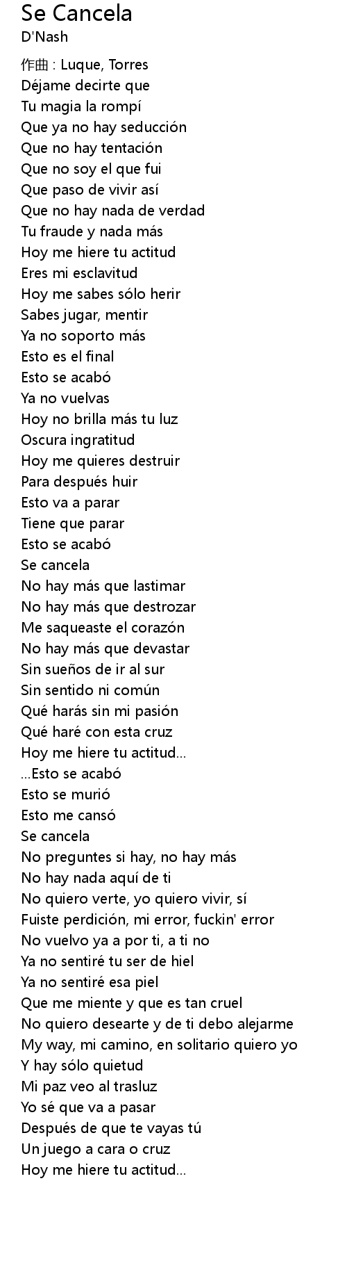 | 歌曲 | Se Cancela |