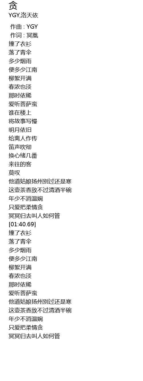 | [01:31.43] | 只爱把柔情贪 |
