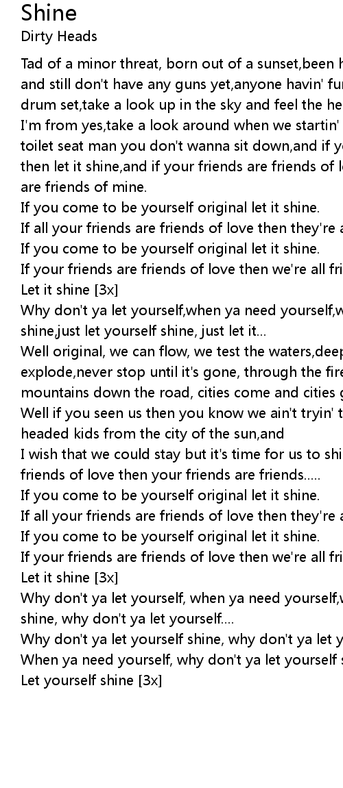 Why don't ya let yourself,when ya need yourself,why don't ya let yourself shine,just let yourself shine, just let it...