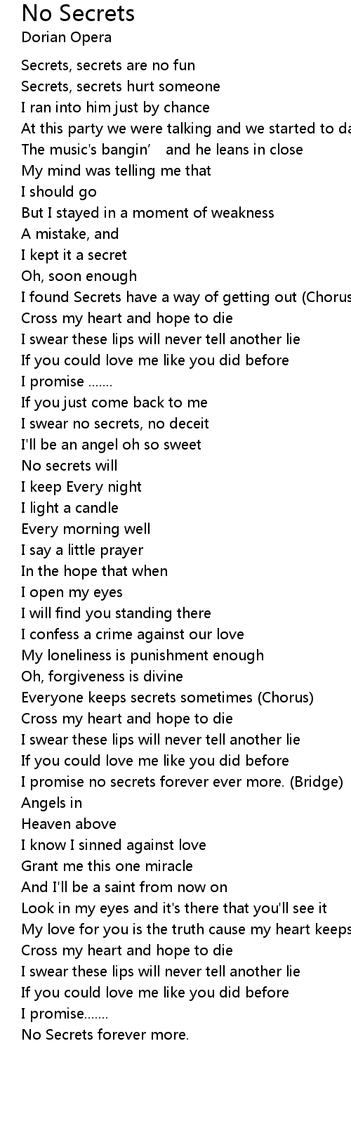 | I promise no secrets forever ever more. (Bridge) | |