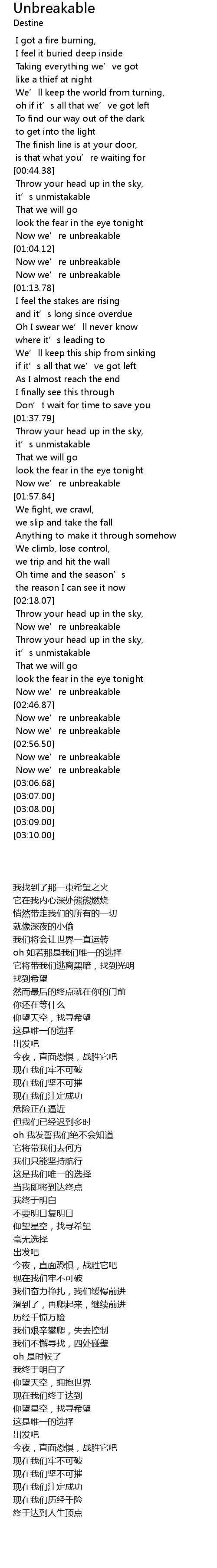 | [03:03.07] | Now we’re unbreakable |