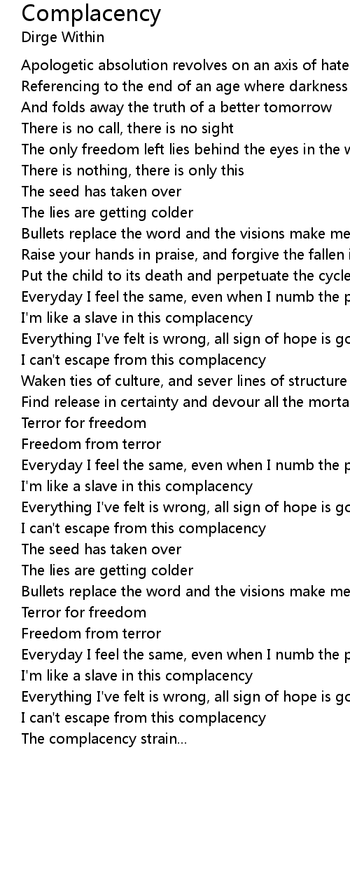 I'm like a slave in this complacency |