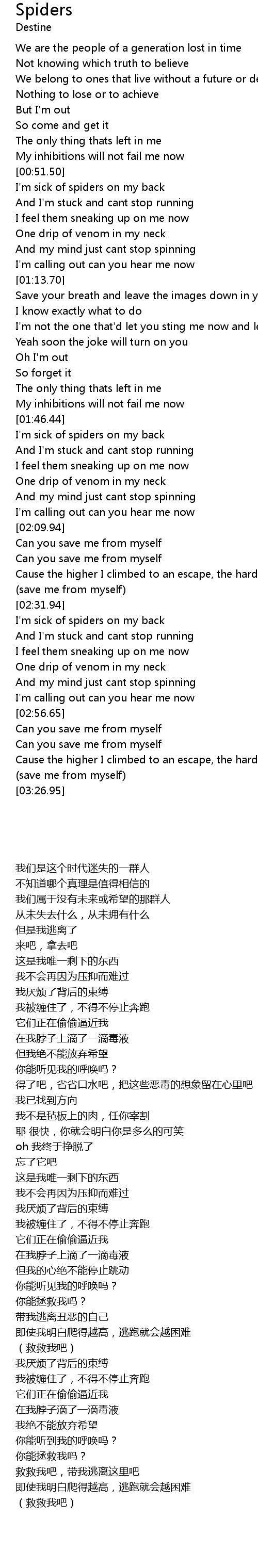 I'm sick of spiders on my back |