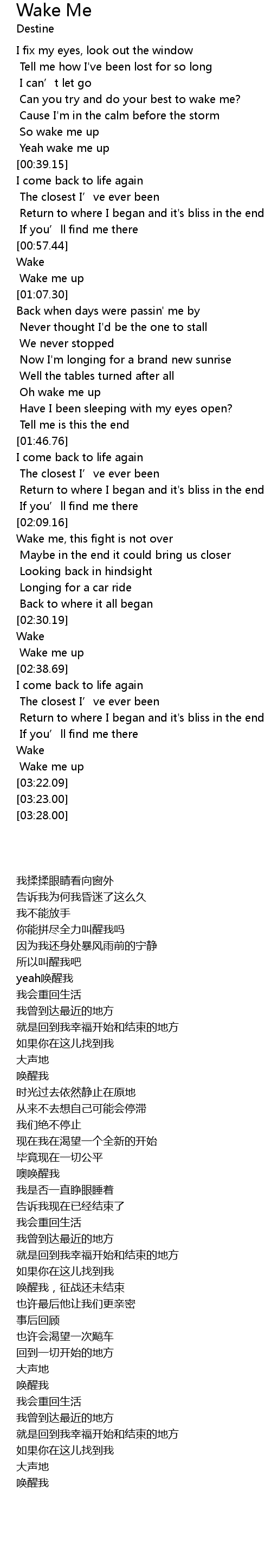 | [03:03.26] | Wake me up |