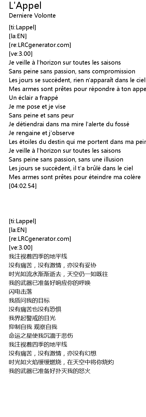 | 歌曲 | L'Appel |