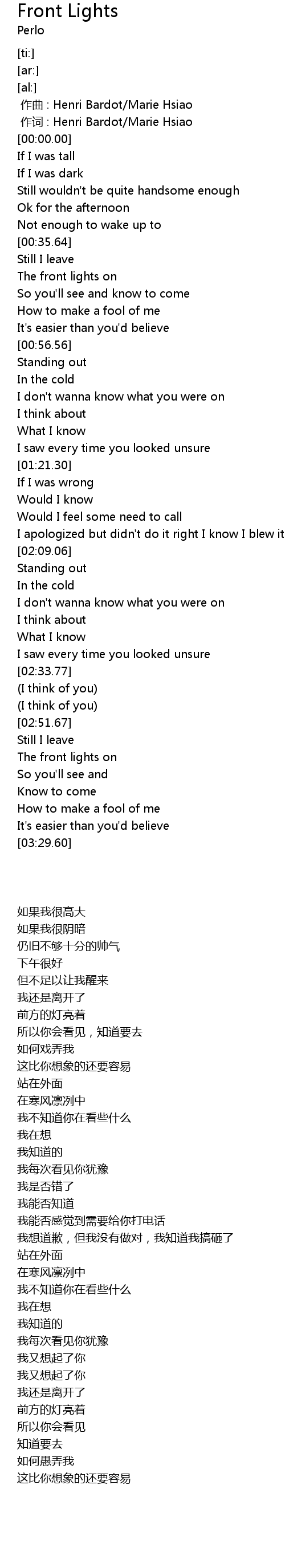 | [00:00.000] | zuò qǔ : Henri Bardot Marie Hsiao |