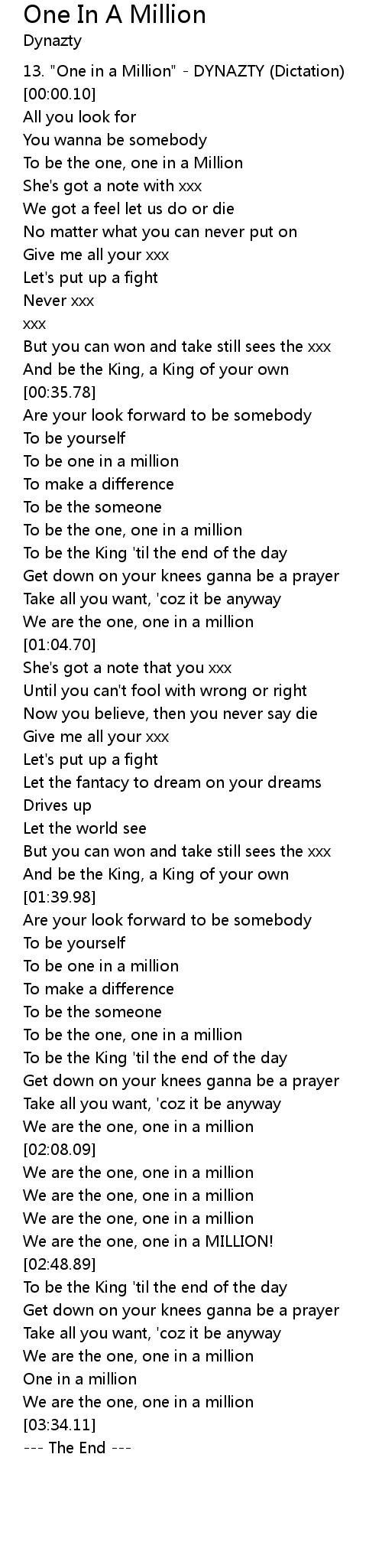 13. "One in a Million" - DYNAZTY (Dictation) |