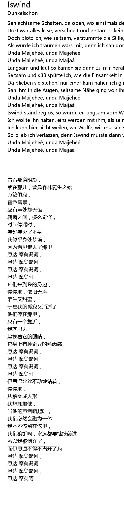 | Als wü rde ich tr umen wars mir, denn ich sah dort die W lfe ziehn. | |