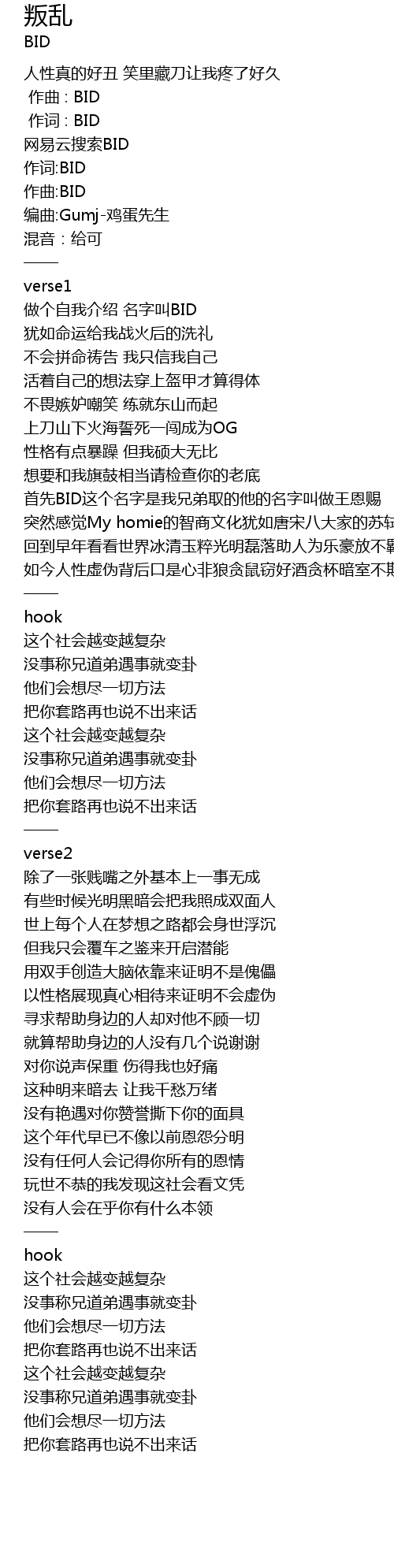 | [00:01.000] | 作词 : BID |