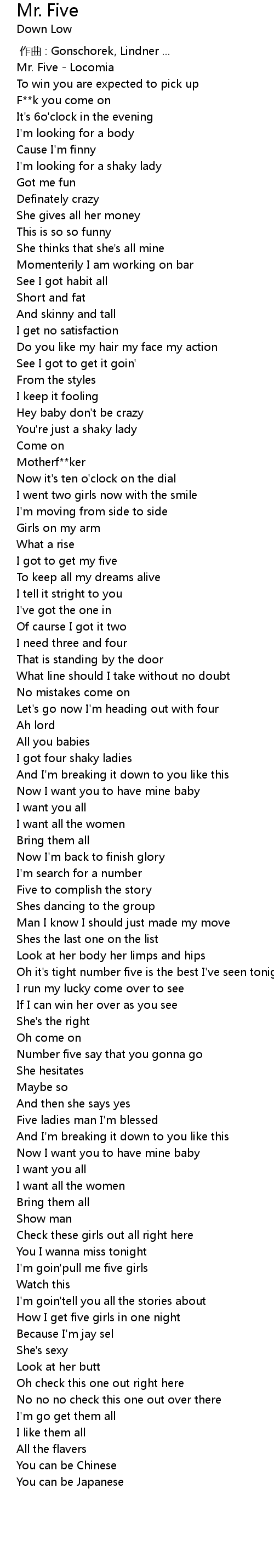 | [02:55.503] | Oh it' s tight number five is the best I' ve seen tonight |