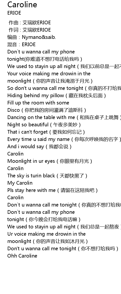 | [00:09.490] | Don t u wanna call my phone tonight ni nan dao bu xiang da dian hua gei wo ma |