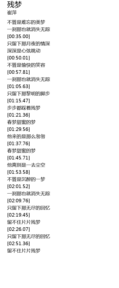 | [02:20.00] | 留不住片片残梦 |