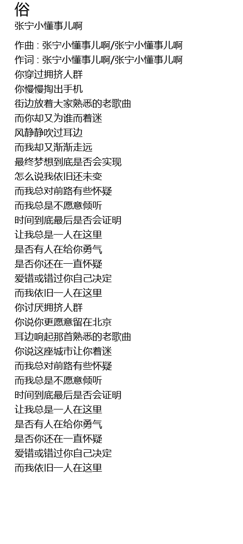 | 作词 : 张宁小懂事儿啊/张宁小懂事儿啊 | |