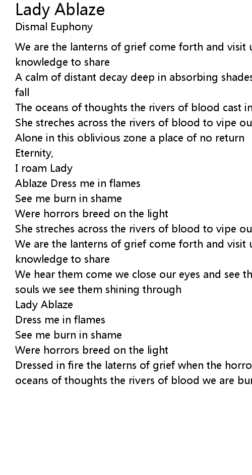 Dressed in fire the laterns of grief when the horrors they breed on the light oceans of thoughts the rivers of blood we are burning in the deep of the night |
