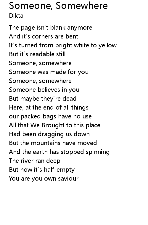 | Someone, somewhere | |