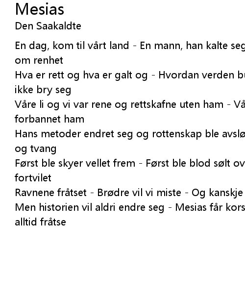 | Men historien vil aldri endre seg Mesias f r korset Og ravner vil for alltid fr tse |
