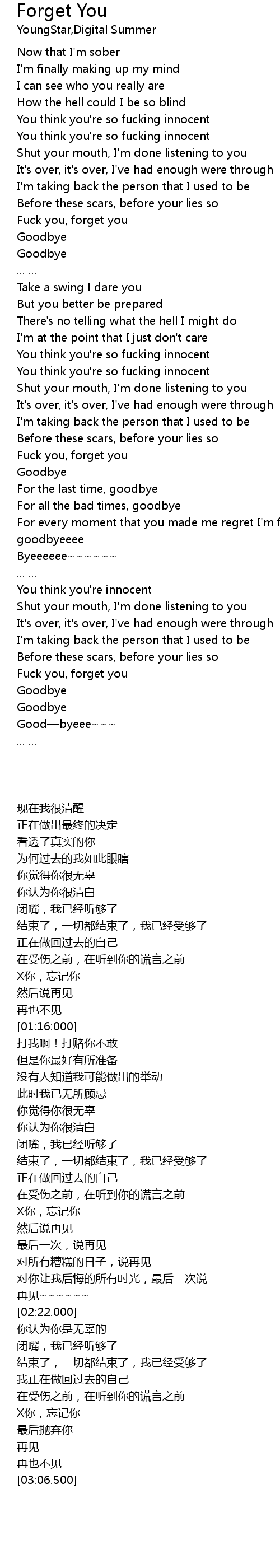 | [02:53.800] | Fuck you, forget you |