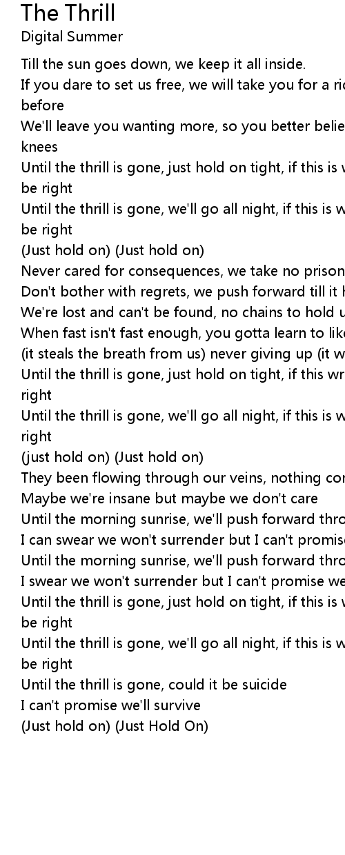 Until the thrill is gone, just hold on tight, if this wrong i don't want to be right |