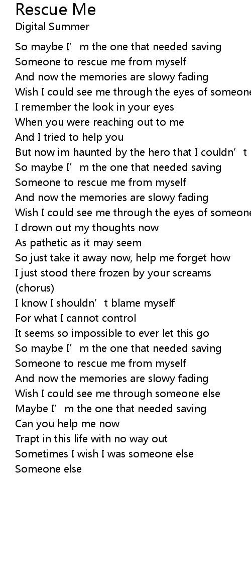 | Someone to rescue me from myself | |