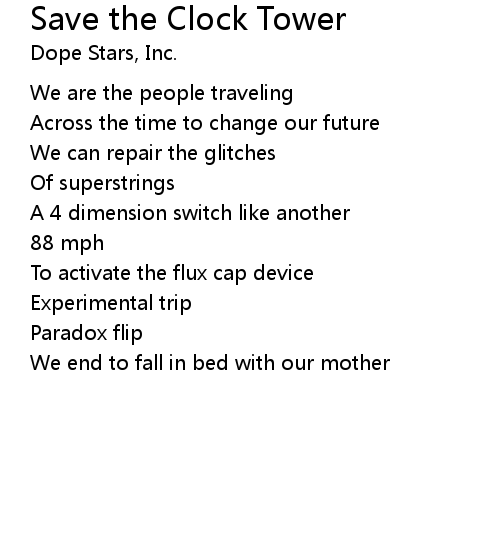 | 歌曲 | Save the Clock Tower |
