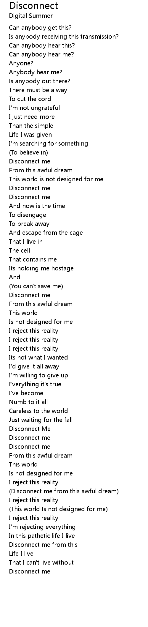 (Disconnect me from this awful dream) |