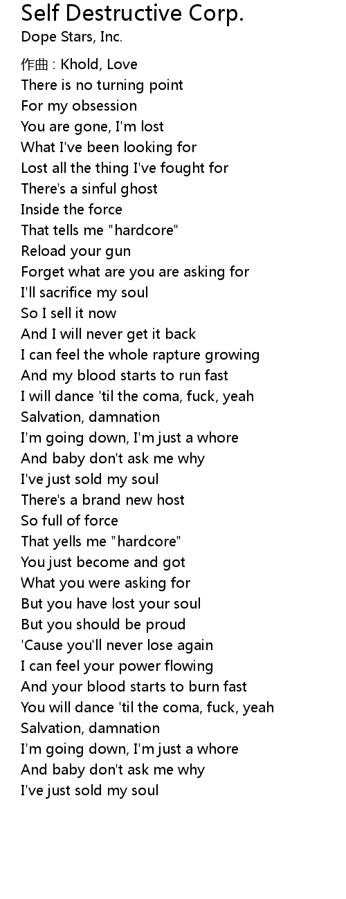 | 歌曲 | Self Destructive Corp. |