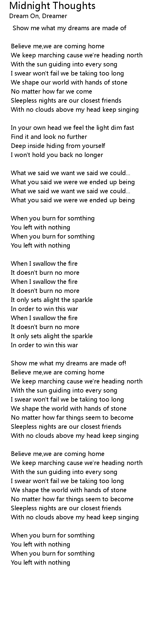 Midnight Thoughts 歌词