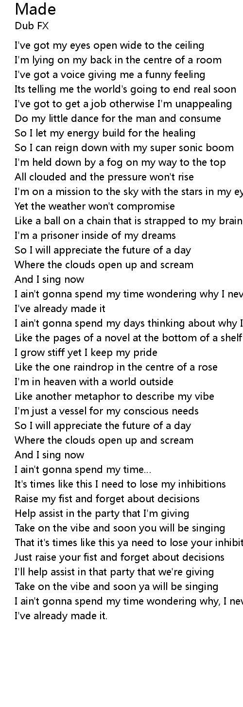 | I ain' t gonna spend my time wondering why, I never made it | |