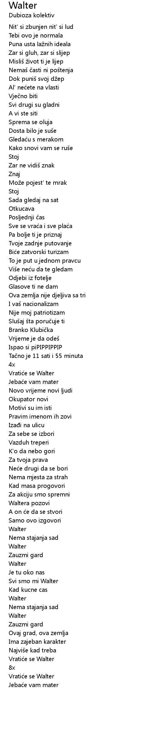 | Svi smo mi Walter | |