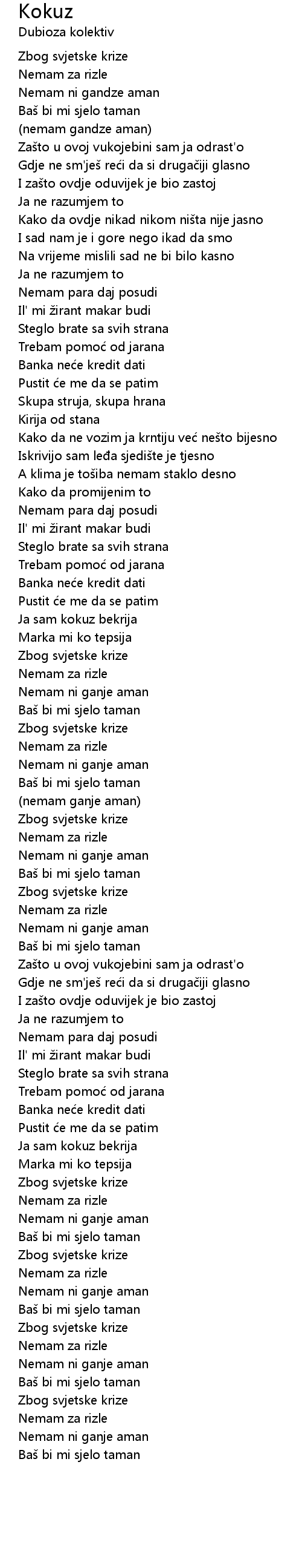 | Kako da ovdje nikad nikom ni ta nije jasno | |