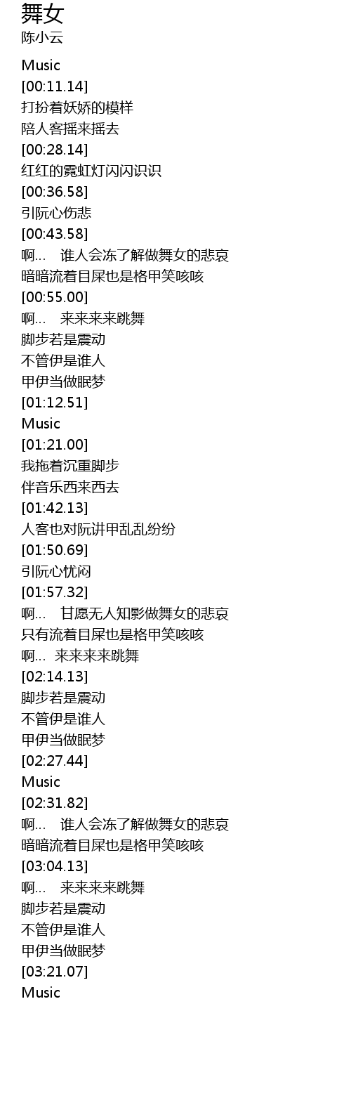 | [01:59.32] | 啊… 甘愿无人知影做舞女的悲哀 |