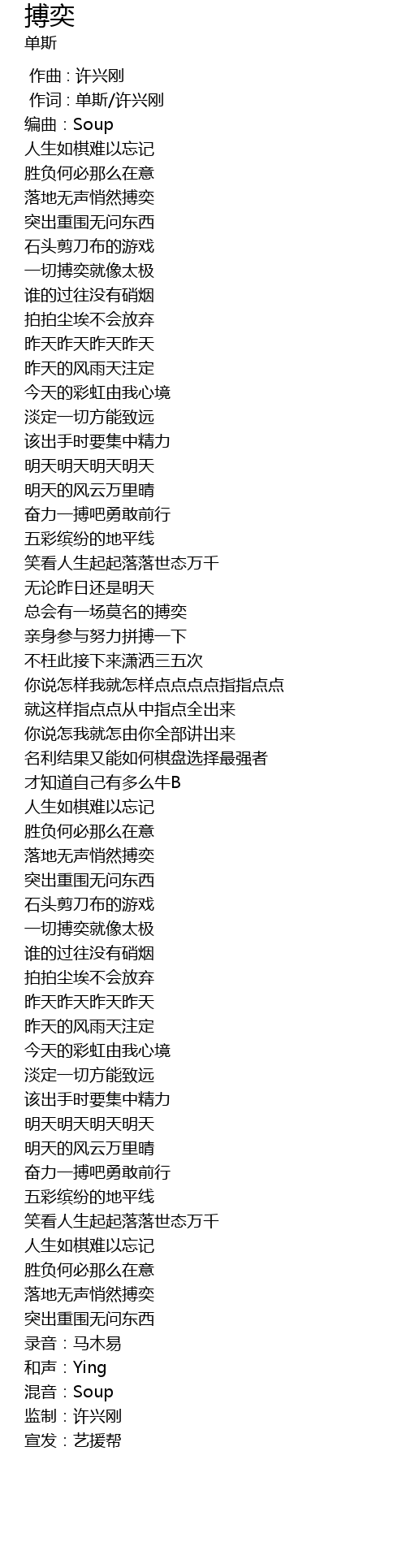 | [00:01.000] | 作词 : 单斯/许兴刚 |
