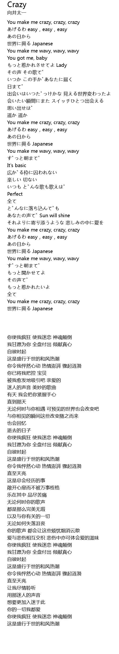 | [00:18.031] | You make me crazy, crazy, crazy |