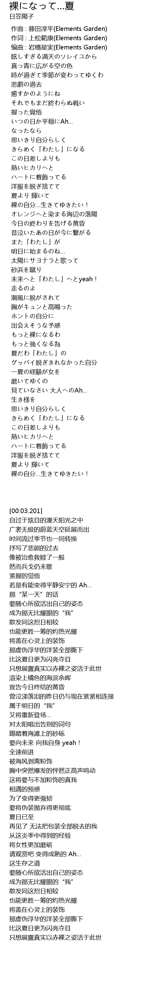 | [00:03.201] | 编曲 : 岩橋星実(Elements Garden) |