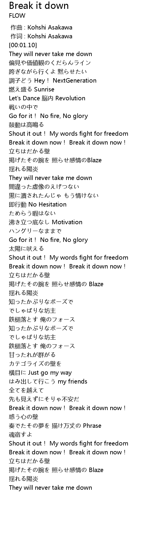 | [00:46.58] | Break it down now! Break it down now! |