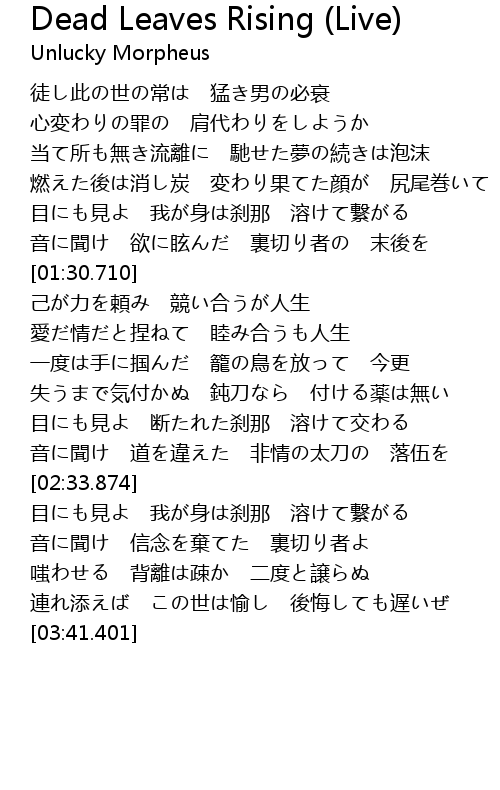 | [03:06.057] | 目にも見よ 我が身は刹那 溶けて繋がる |