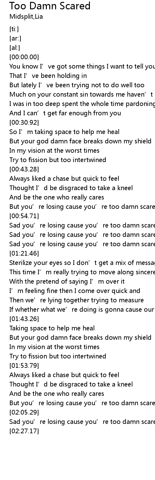 | [02:24.27] | Sad you’re losing cause you’re too damn scared |
