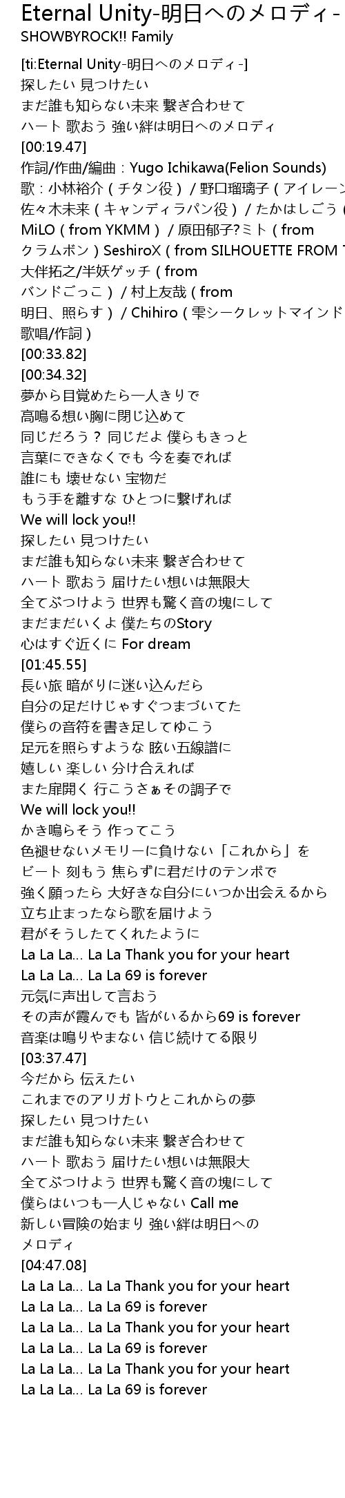 | [ti:Eternal Unity-明日へのメロディ-] | |