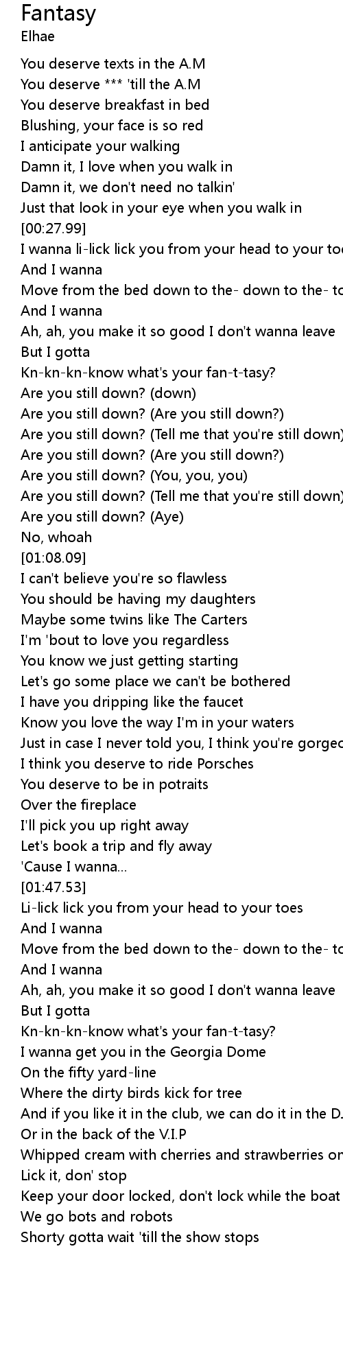 | [02:03.88] | Kn-kn-kn-know what's your fan-t-tasy? |