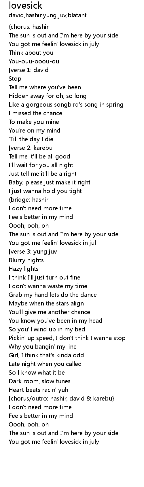 | [01:43.51] | You got me feelin' lovesick in jul- |