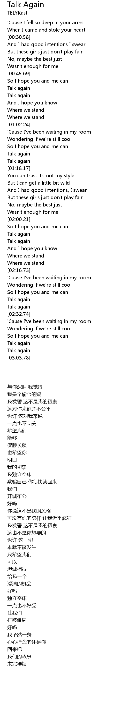 歌曲 Talk Again